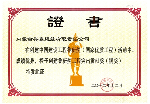 創(chuàng)建魯班獎(jiǎng)工程突出貢獻(xiàn)獎(jiǎng)
