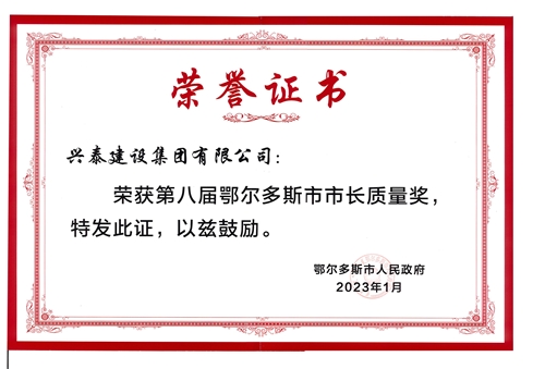 第八屆鄂爾多斯市市長質(zhì)量獎(jiǎng)