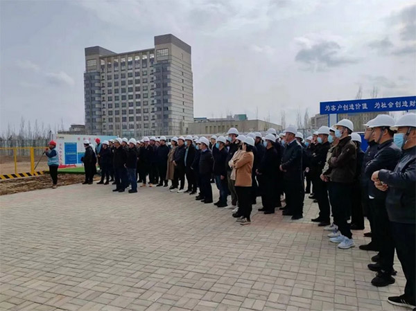“項目優(yōu)先選用高強(qiáng)、高性能、高耐久、耐腐蝕、抗老化、綠色建材等材料,延長建筑使用壽命,降低部件更換頻次,從建筑全生命周期降低原材料消耗,實現(xiàn)源頭減排”,“充分考慮施工臨時設(shè)施與永久性設(shè)施的結(jié)合利用,通過‘永臨’結(jié)合,減少重復(fù)建設(shè)”。在鄂爾多斯市“綠色建造”觀摩交流會現(xiàn)場,北師大鄂爾多斯附屬學(xué)校(鄂爾多斯足球?qū)W校)項目部管理人員在不同區(qū)域向260余名觀摩嘉賓介紹著本項目綠色建造實施情況。