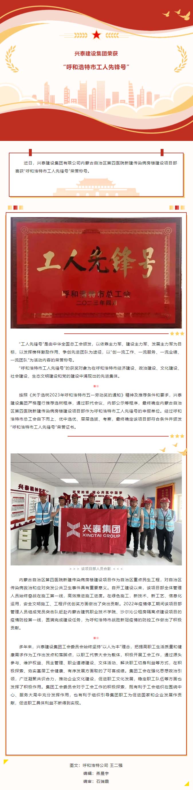 興泰建設(shè)集團榮獲“呼和浩特市工人先鋒號”